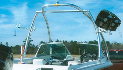 A dual header is built into all of our towers to provide space for mounting a variety of optional tower accessories. If you want shade over your boat, you can get an over-the-top bimini and attach it to the tower. The MT1 tower is available in two finishes: gloss black powder coat and polished/bright dipped anodized. These finishes provide extra layers of protection and corrosion resistance. This wakeboard tower also has a swivel tow point made of nylon. Its tow point creates a bearing-like surface as the rope moves from side to side and ensures smooth pulls. If you’re looking for a strong, reliable wakeboard tower for your boat, the MT1 is exactly what you’ve been looking for!