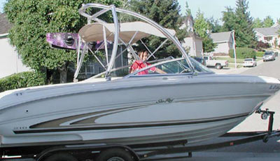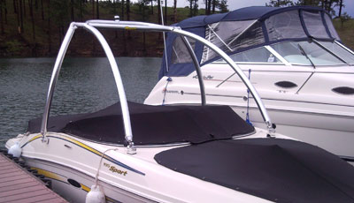 Please call us with the five digit serial number that is located near the ski tow point to confirm which tower you have. The height for both the MT1 and MT2 will depend on the beam width and the leg spread. You can order bimini parts under our parts section.