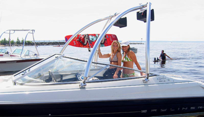 A dual header is built into all of our towers to provide space for mounting a variety of optional tower accessories. If you want shade over your boat, you can get an over-the-top bimini and attach it to the tower. The MT1 tower is available in two finishes: gloss black powder coat and polished/bright dipped anodized. These finishes provide extra layers of protection and corrosion resistance. This wakeboard tower also has a swivel tow point made of nylon. Its tow point creates a bearing-like surface as the rope moves from side to side and ensures smooth pulls. If you’re looking for a strong, reliable wakeboard tower for your boat, the MT1 is exactly what you’ve been looking for!