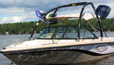 A dual header is built into all of our towers to provide space for mounting a variety of optional tower accessories. If you want shade over your boat, you can get an over-the-top bimini and attach it to the tower. The MT1 tower is available in two finishes: gloss black powder coat and polished/bright dipped anodized. These finishes provide extra layers of protection and corrosion resistance. This wakeboard tower also has a swivel tow point made of nylon. Its tow point creates a bearing-like surface as the rope moves from side to side and ensures smooth pulls. If you’re looking for a strong, reliable wakeboard tower for your boat, the MT1 is exactly what you’ve been looking for!