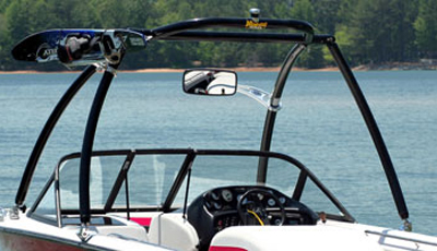 A dual header is built into all of our towers to provide space for mounting a variety of optional tower accessories. If you want shade over your boat, you can get an over-the-top bimini and attach it to the tower. The MT1 tower is available in two finishes: gloss black powder coat and polished/bright dipped anodized. These finishes provide extra layers of protection and corrosion resistance. This wakeboard tower also has a swivel tow point made of nylon. Its tow point creates a bearing-like surface as the rope moves from side to side and ensures smooth pulls. If you’re looking for a strong, reliable wakeboard tower for your boat, the MT1 is exactly what you’ve been looking for!