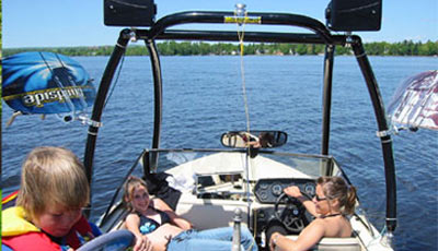 A dual header is built into all of our towers to provide space for mounting a variety of optional tower accessories. If you want shade over your boat, you can get an over-the-top bimini and attach it to the tower. The MT1 tower is available in two finishes: gloss black powder coat and polished/bright dipped anodized. These finishes provide extra layers of protection and corrosion resistance. This wakeboard tower also has a swivel tow point made of nylon. Its tow point creates a bearing-like surface as the rope moves from side to side and ensures smooth pulls. If you’re looking for a strong, reliable wakeboard tower for your boat, the MT1 is exactly what you’ve been looking for!