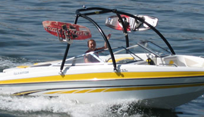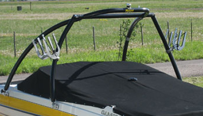 A dual header is built into all of our towers to provide space for mounting a variety of optional tower accessories. If you want shade over your boat, you can get an over-the-top bimini and attach it to the tower. The MT1 tower is available in two finishes: gloss black powder coat and polished/bright dipped anodized. These finishes provide extra layers of protection and corrosion resistance. This wakeboard tower also has a swivel tow point made of nylon. Its tow point creates a bearing-like surface as the rope moves from side to side and ensures smooth pulls. If you’re looking for a strong, reliable wakeboard tower for your boat, the MT1 is exactly what you’ve been looking for!