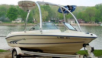 A dual header is built into all of our towers to provide space for mounting a variety of optional tower accessories. If you want shade over your boat, you can get an over-the-top bimini and attach it to the tower. The MT1 tower is available in two finishes: gloss black powder coat and polished/bright dipped anodized. These finishes provide extra layers of protection and corrosion resistance. This wakeboard tower also has a swivel tow point made of nylon. Its tow point creates a bearing-like surface as the rope moves from side to side and ensures smooth pulls. If you’re looking for a strong, reliable wakeboard tower for your boat, the MT1 is exactly what you’ve been looking for!