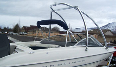 A dual header is built into all of our towers to provide space for mounting a variety of optional tower accessories. If you want shade over your boat, you can get an over-the-top bimini and attach it to the tower. The MT1 tower is available in two finishes: gloss black powder coat and polished/bright dipped anodized. These finishes provide extra layers of protection and corrosion resistance. This wakeboard tower also has a swivel tow point made of nylon. Its tow point creates a bearing-like surface as the rope moves from side to side and ensures smooth pulls. If you’re looking for a strong, reliable wakeboard tower for your boat, the MT1 is exactly what you’ve been looking for!