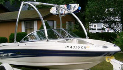 A dual header is built into all of our towers to provide space for mounting a variety of optional tower accessories. If you want shade over your boat, you can get an over-the-top bimini and attach it to the tower. The MT1 tower is available in two finishes: gloss black powder coat and polished/bright dipped anodized. These finishes provide extra layers of protection and corrosion resistance. This wakeboard tower also has a swivel tow point made of nylon. Its tow point creates a bearing-like surface as the rope moves from side to side and ensures smooth pulls. If you’re looking for a strong, reliable wakeboard tower for your boat, the MT1 is exactly what you’ve been looking for!