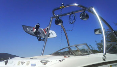 A dual header is built into all of our towers to provide space for mounting a variety of optional tower accessories. If you want shade over your boat, you can get an over-the-top bimini and attach it to the tower. The MT1 tower is available in two finishes: gloss black powder coat and polished/bright dipped anodized. These finishes provide extra layers of protection and corrosion resistance. This wakeboard tower also has a swivel tow point made of nylon. Its tow point creates a bearing-like surface as the rope moves from side to side and ensures smooth pulls. If you’re looking for a strong, reliable wakeboard tower for your boat, the MT1 is exactly what you’ve been looking for!
