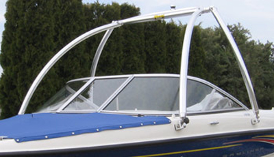 Please call us with the five digit serial number that is located near the ski tow point to confirm which tower you have. The height for both the MT1 and MT2 will depend on the beam width and the leg spread. You can order bimini parts under our parts section.