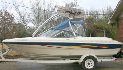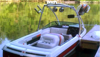 Monster's MT2 wakeboard tower is particularly well suited for boats with longer windshields.