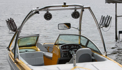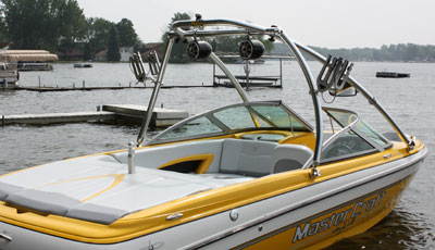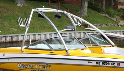 Monster's MT2 wakeboard tower is particularly well suited for boats with longer windshields.