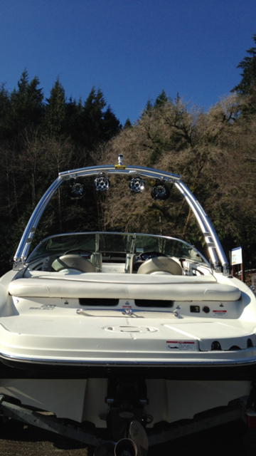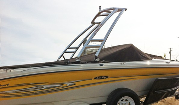For years, boat OEMs (including Bayliner) have used the MTK as their factory option on new boats for its style and quality. To match the look of your boat, you can choose from 4 finishes. Get the MTK in Stealth Black (matte), Polar White (glossy), Gloss Black Powder Coat, or Polished/bright-dipped anodized. Regardless of your boat’s style, the MTK wakeboard tower is designed to fit on boats with a beam width of 76 to 102 inches and can be top or side mounted. The tower also has dual header so you can mount a variety of accessories, from speakers to lights. An over-the-top bimini is available to provide shade on the boat. If you want a heavy duty wakeboard tower with style and options, the MTK wakeboard tower is for you!